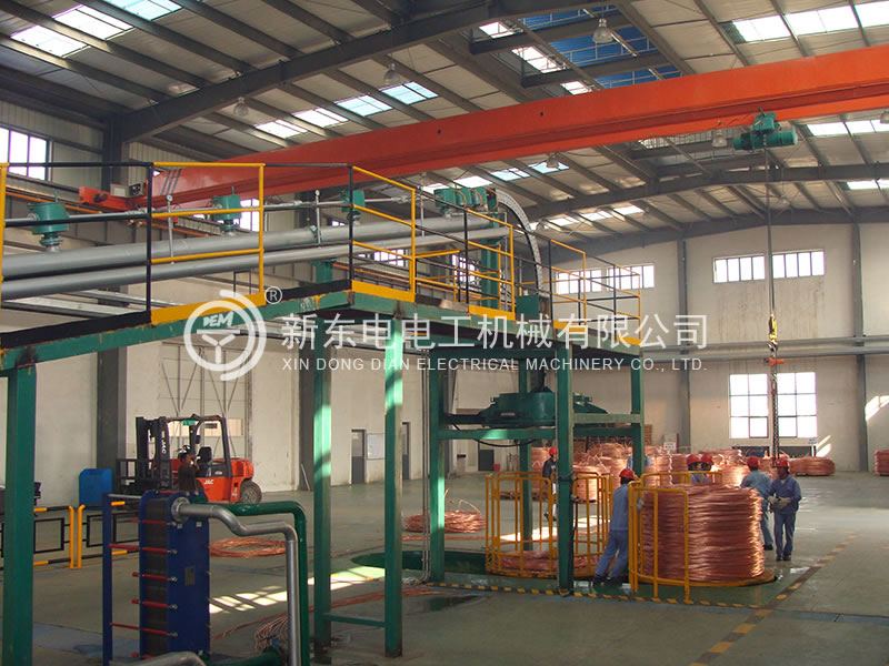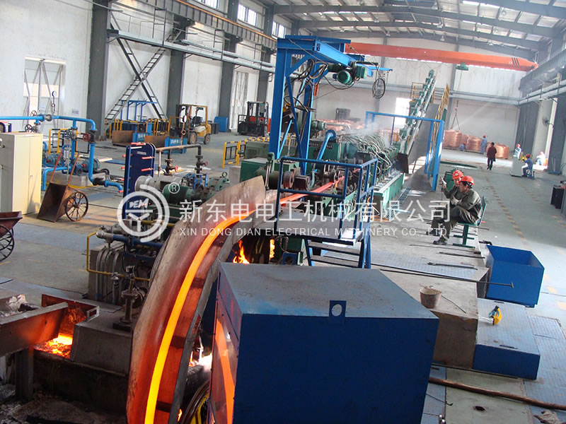 本生產(chǎn)線積徐州新東電電工多年研發(fā)銅連鑄連軋技術之經(jīng)驗,綜合美國南方線材、德國SMS、意大利 PROPERZI 同類設備的優(yōu)勢特點,為國內(nèi)獨創(chuàng),可用100﹪廢舊紫銅作原料,采用先進的火法精煉技術,直接在連鑄連軋生產(chǎn)線上生產(chǎn)符合國標的光亮低氧銅桿。
